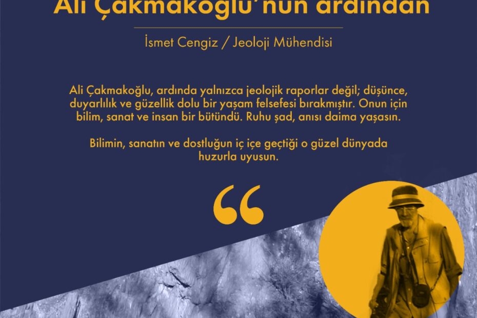 Ali Çakmakoğlu, ardında yalnızca jeolojik raporlar değil; düşünce, duyarlılık ve güzellik dolu bir yaşam felsefesi bırakmıştır.